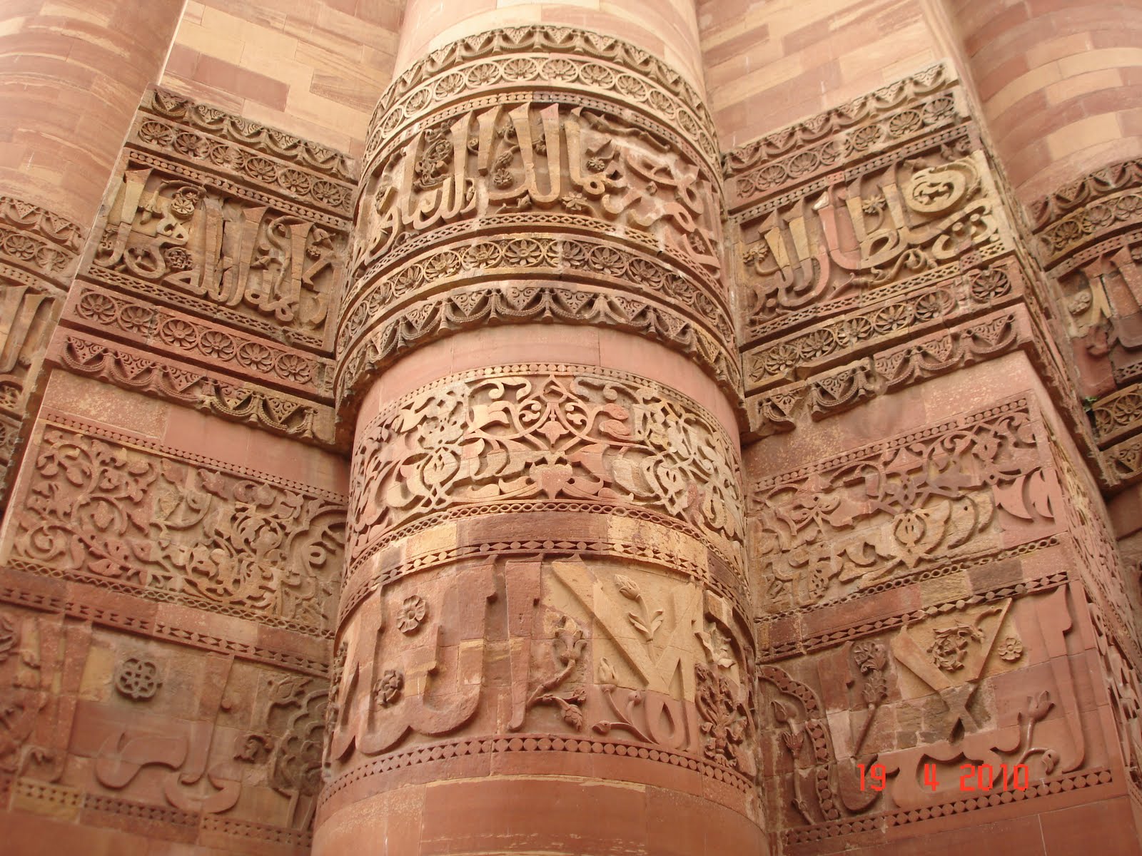 Following a continental lunch at Khan Market, we drove to South Delhi to see another architectural marvel - the Qutab Minar, the world's tallest brick minaret at 72 mtrs. Examples of Hindu architecture can also be seen in the Qutab complex, an indication of the existence of a Hindu temple(s) here, initially, whose columns seem to have been re-used. The iron pillar next to the minaret reportedly bears an inscription in Brahmi script of 4th century AD, but this has been fenced off and we could not take a close look.